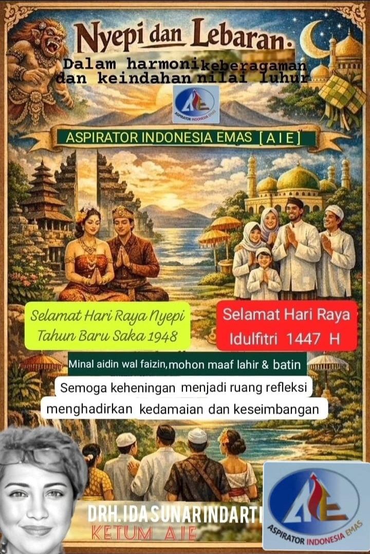 AWITV.co.id, -Jakarta- Momentum istimewa terjadi ketika dua hari besar keagamaan, Hari Raya Nyepi Tahun Baru Saka 1948 dan Hari Raya Idulfitri 1447 Hijriah, hadir dalam waktu yang berdekatan. Peristiwa ini bukan sekadar kebetulan kalender, melainkan cerminan indah dari harmoni keberagaman bangsa Indonesia yang menjunjung tinggi nilai toleransi, persatuan, dan kebijaksanaan luhur.
