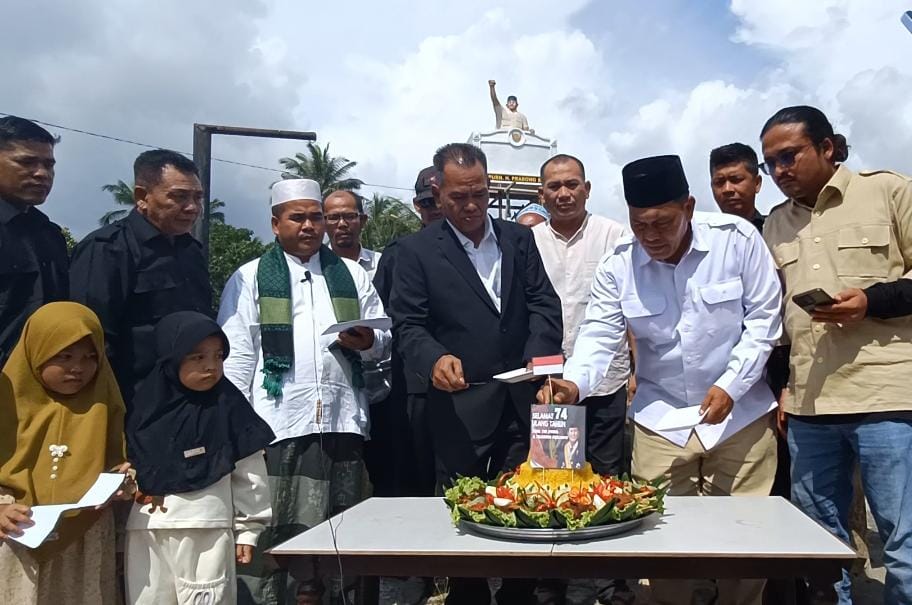Sumatra Utara 17/10/2025 – Masyarakat Padangsidimpuan turut merayakan syukuran peringatan hari kelahiran Presiden Republik Indonesia ke-8 dengan menggelar acara potong tumpeng dan santunan anak yatim piatu. Acara ini dilaksanakan di Monumen Persatuan dan Perjuangan Presiden Prabowo Subianto, yang terletak di Lubuk Naga, Padangsidimpuan, Sumatera Utara.